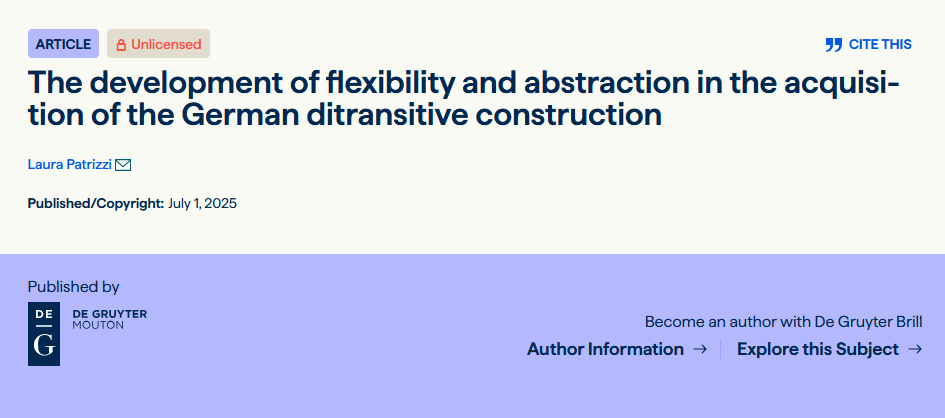 I am particularly proud to have published my first article on the development of flexibility and abstraction in the acquisition of the ditransitive construction. Having my first publication out really felt like a milestone!
